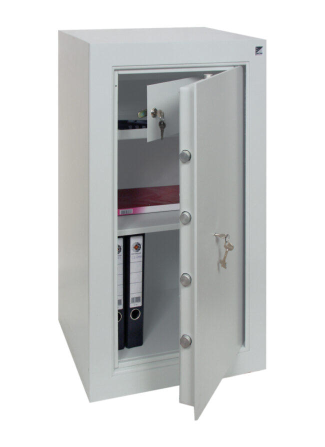Мебельный сейф КС 90Т-4 имеет ограниченную пожаростойкость и предназначен для хранения, защиты документов и материальных ценностей от несанкционированного доступа (взлома). Сейф сертифицирован и соответствуют || классу стойкости к взлому по СТБ 51.2.01-99. Серия КС имеет сейфовый механический замок высокой секретности MAUER (Германия) с уровнем секретности не менее 280 000 комбинаций, ригельную систему запирания, двусторонний корпус с наполнением, скрытые петли, на задней стенке сейфа предусмотрены отверстия для крепления его к стене, полимерное покрытие светло-серого цвета (RAL 7035).