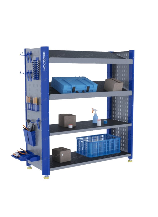 Полочный производственный стеллаж KronVuz CT H2N2 15Х16-2SB2-KV-N-01 на виброопорах отличается надежностью и устойчивостью к вибрационным нагрузкам. Боковые перфорированные экраны позволяют удобно разместить ручной инструмент и расходные материалы.