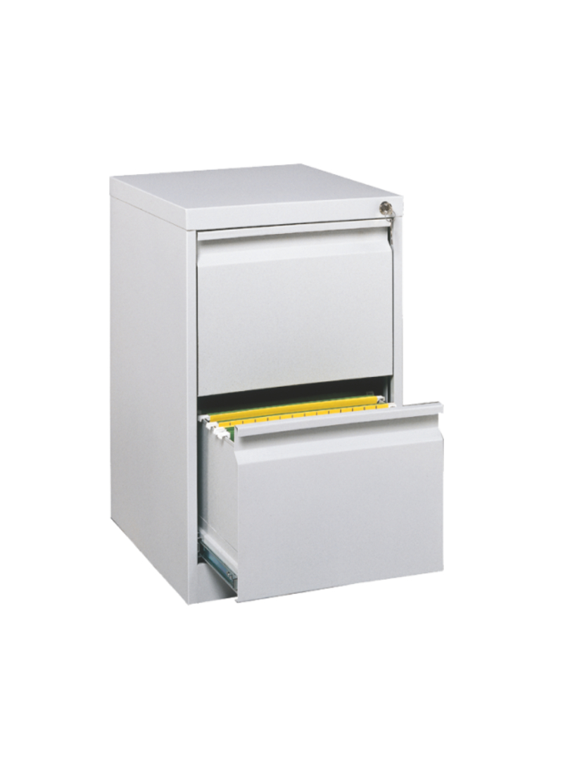 Шкаф картотечный ТК 2Ф имеет жестко-сварную конструкцию, размеры 700х470х575 мм (ВхШхГ), 2 выдвижных ящика на телескопических направляющих, нагрузка на ящик до 25 кг.