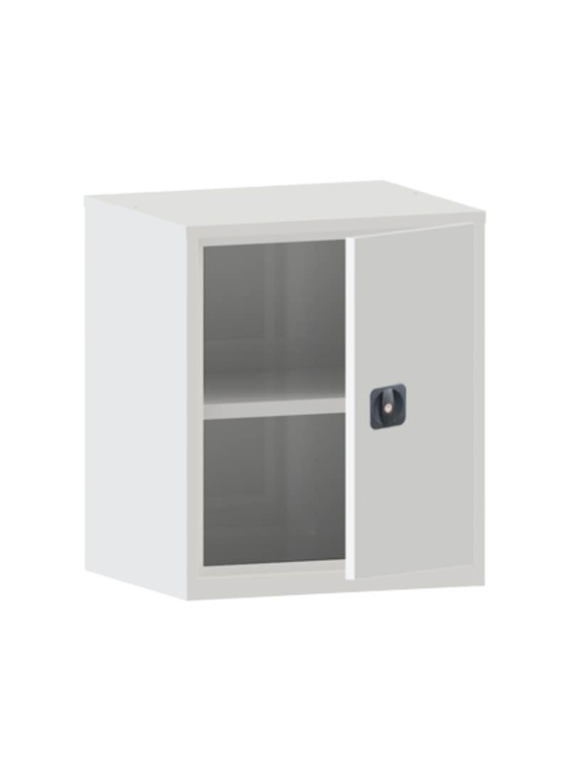 Шкаф металлический АБШ 1 имеет жестко-сварную конструкцию, размеры: 700х600х500 мм (ВхШхГ), 1 регулируемая по высоте полка с шагом 50 мм, распределенная нагрузка на полку до 100 кг.