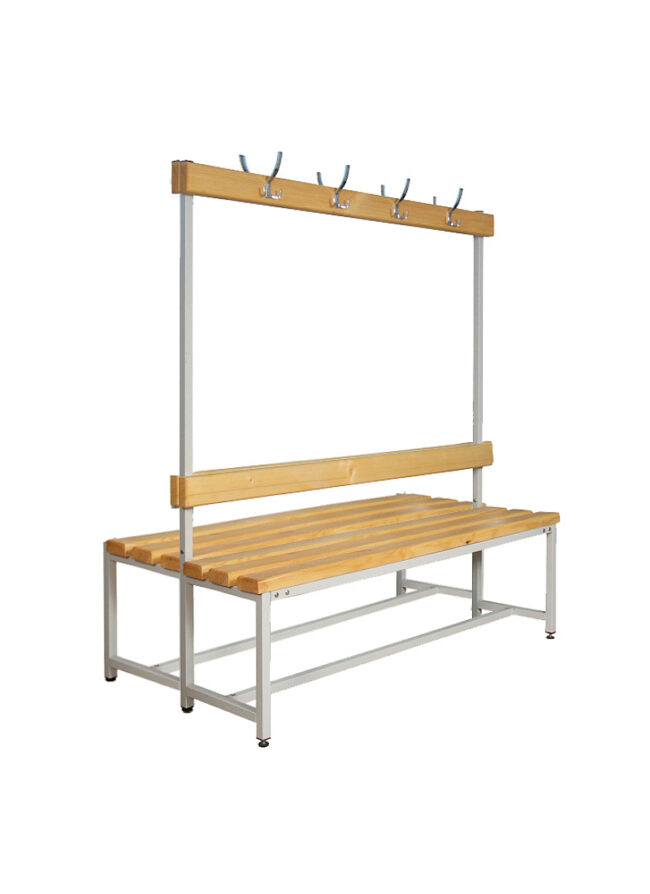 Очень прочная и долговечная двухсторонняя скамья со спинкой и вешалкой.