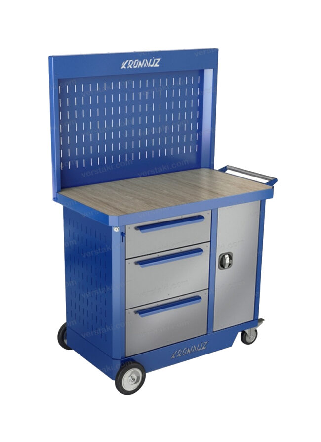 Передвижная тележка для инструмента с экраном и покрытием из фанеры TBV-311-S используется для хранения и перемещения ручных или механизированных рабочих приспособлений внутри производственных помещений, в автосервисах, ремонтных мастерских.