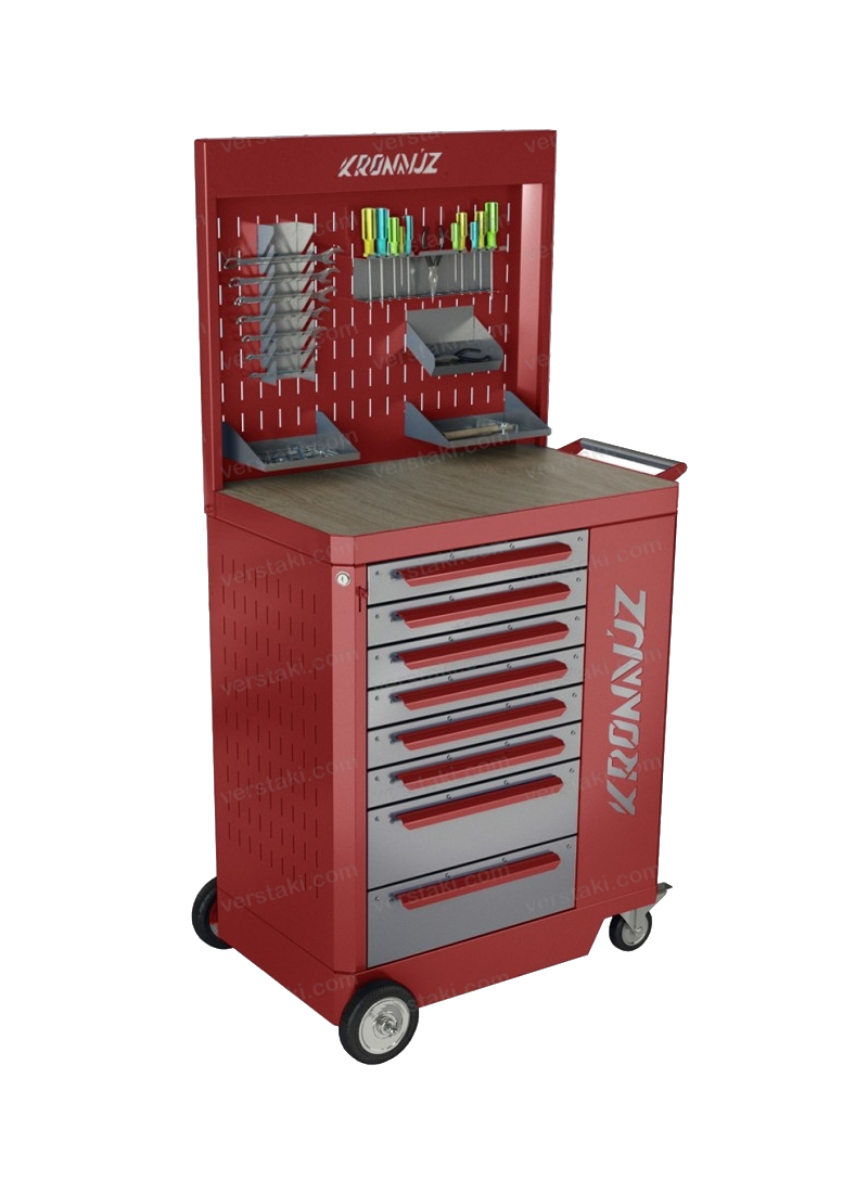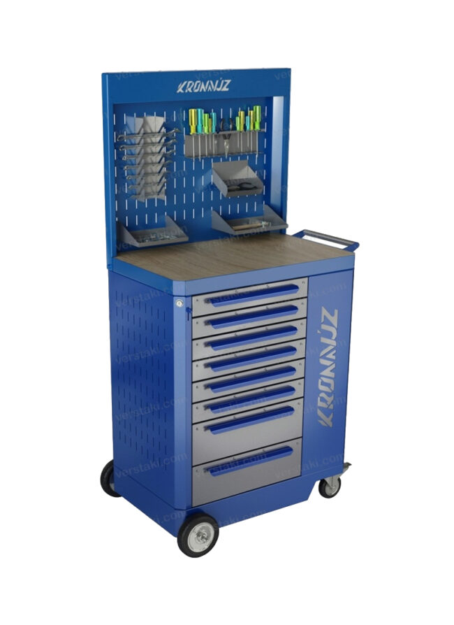 Передвижная тележка для инструмента с экраном TB 801 — S используется для хранения и перемещения ручных или механизированных рабочих приспособлений внутри производственных помещений, в автосервисах, ремонтных мастерских.