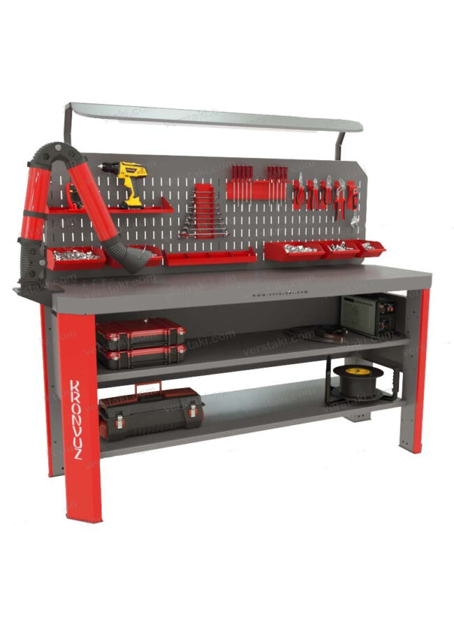 Слесарный бестумбовый верстак с вытяжкой Гефест-ВС-000-ЭПО-В1 удобен для работы электромонтажника, позволяет выполнять весь комплекс необходимых работ, эффективно организовав пространство и разместив все рабочие принадлежности по своим местам.