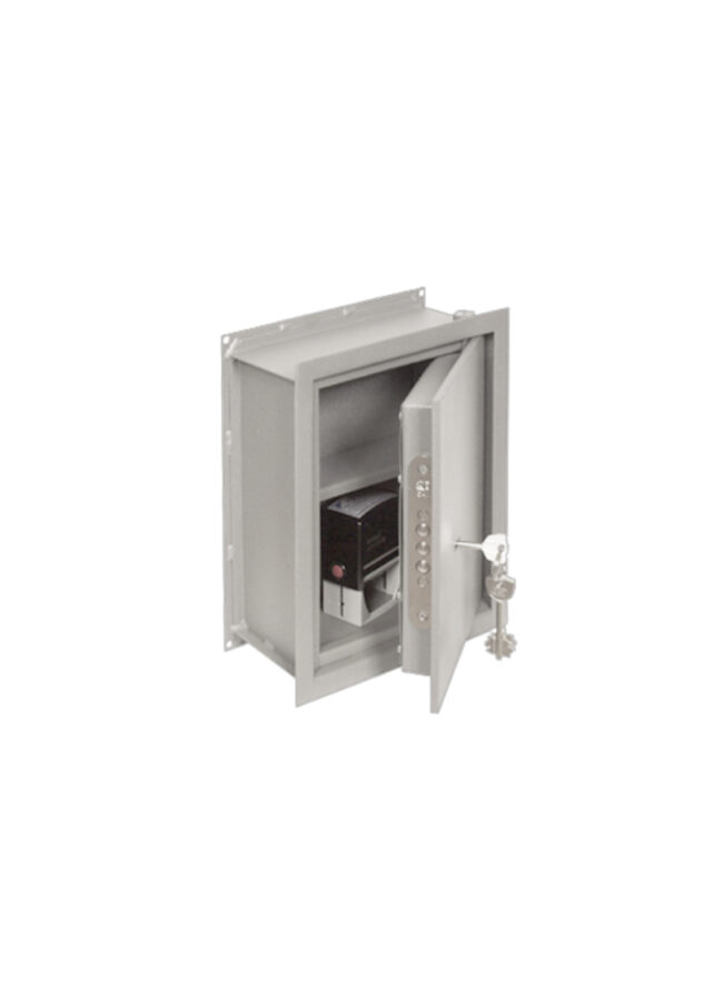 Сейф мебельный встраиваемый ВСМ 30 110 мм, что позволяет устанавливать в стены современных панельных домов. Он оборудован ригельным замком АО САМ (Россия) высокой степени секретности.